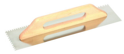 Hladítko nerezové zubové FESTA 500x130 mm, zub e8, s dřevěnou rukojetí, tl.plechu 0,7 mm. Používá se zejména k nanášení lepidel pod obklady a dlažby, dále pak k nanášení stěrek, štuků, omítek, tmelů a dalších stavebních hmot. Hladítko nerezové zubové…