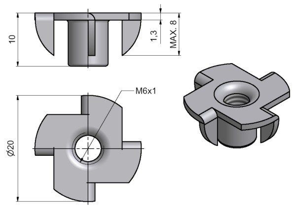 - HMOŽDINKA uzlovací průměr 8mm hranatá