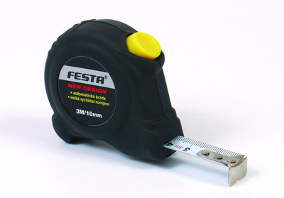Kvalitní svinovací metr, kalená páska, dobře čitelná bílá stupnice, EEC certifikát
