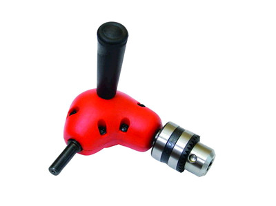 Nástavec na vrtačku pro vrtání pod úhlem 90°, O stopky 10mm, max.upínací O sklíčidla 10mm. Tělo ABS plast, převodové soukolí kov. Převodový poměr 1:1.