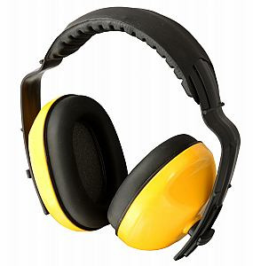 Žluté ochranné sluchátka z ABS materiálu, PVC polštářky, měkký spojovací oblouk, možnost nastavení délky, 27 dB, CE EN 352-1. * Zboží je pouze na objednávku.