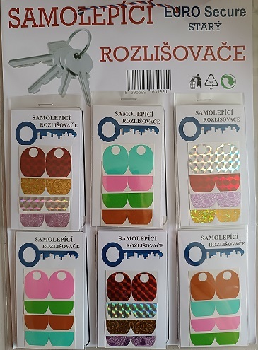 Samolepící rozlišovače klíčů pro klíče EURO SECURE starý typ V sáčku 4 páry rozlišovačů různých barev 30 sáčků na kartonu