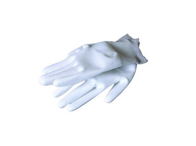 Bílý úplet z jemného nylonu máčené ve vrstvě polyuretanu, CE EN 388, velikost 10.