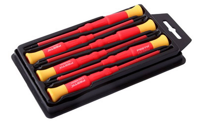 Sada 6 ks jemných elektrošroubováků v plastovém kufříku. Sada obsahuje ploché, PH, TORX šroubováky.