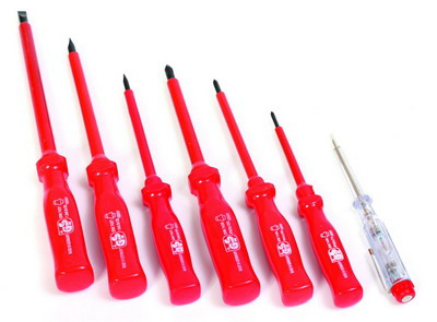Sada nejpoužívanějších typů šroubováků FESTA a zkoušečky, které mají certifikaci elektro VDE 1000 V, IEC/EN 60900-2004, kovový dřík je vyroben z velmi kvalitní chromvanadiové oceli, kalený hrot je magnetický, kombinace polypropylenu a pryže na ergonomicky tvarované rukojeti zaručuje výborné antiskluzové vlastnosti a dobrou odolnost vůči mazadlům a chemikáliím, Sada obsahuje nejpoužívanější druhy hrotů.