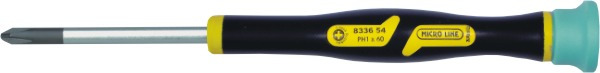 Šroubovák určený pro montáž a opravy zařízení menších rozměrů (např. telefony, měřící přístroje, fotoaparáty apod.) - zušlechtěná vysoce legovaná ocel - povrch chromován - pracovní část černěna - 2-komponentní s kruhovým průřezem - tvrdé jádro z PP, měkčí část z TPE - otočný PP konec