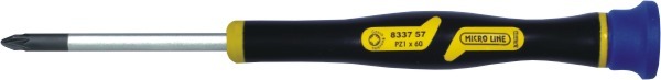 Šroubovák určený pro montáž a opravy zařízení menších rozměrů (např. telefony, měřící přístroje, fotoaparáty apod.) - zušlechtěná vysoce legovaná ocel - povrch chromován - pracovní část černěna - 2-komponentní s kruhovým průřezem - tvrdé jádro z PP, měkčí část z TPE - otočný PP konec
