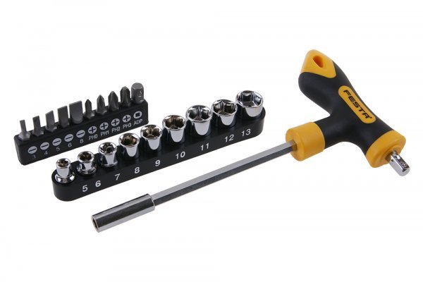 Šroubovák T + 20 nástavců. Sada obsahuje: bity: ploché a PH, hlavice 9ks. Pro hobby použití.