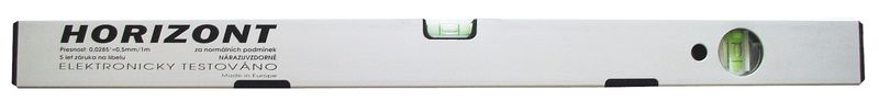 Horizont vodováha se dvěma libelami a magnety, přesnost 0,5mm/m = 0,0285°, eloxovaný otěruvzdorný povrch, tloušťka stěny ALU profilu 1,5mm, kapalina v libelách je UV stabilizovaná a fluorescenční, horizontální optická libela