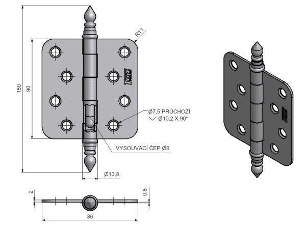 - KOVÁNÍ R101 bezpečnostní bez překrytky fab 90mm Tb3 F1 stříbrný
