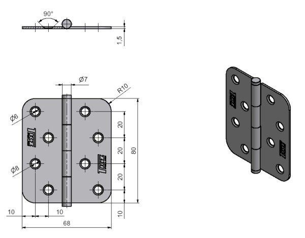 ZÁVĚS dveřní KZ 80x68 bílý zinek (50) *