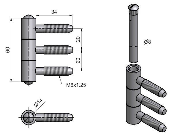ZÁVĚS dveřní tři dílný 14x60 M8 bílý zinek *